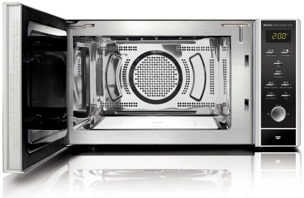 Die CASO M20 Ecostyle Mikrowelle: leichte Reinigung dank flachem Keramikboden mit Mikrowellenreflektor, auch ideal für eckige Auflaufformen.