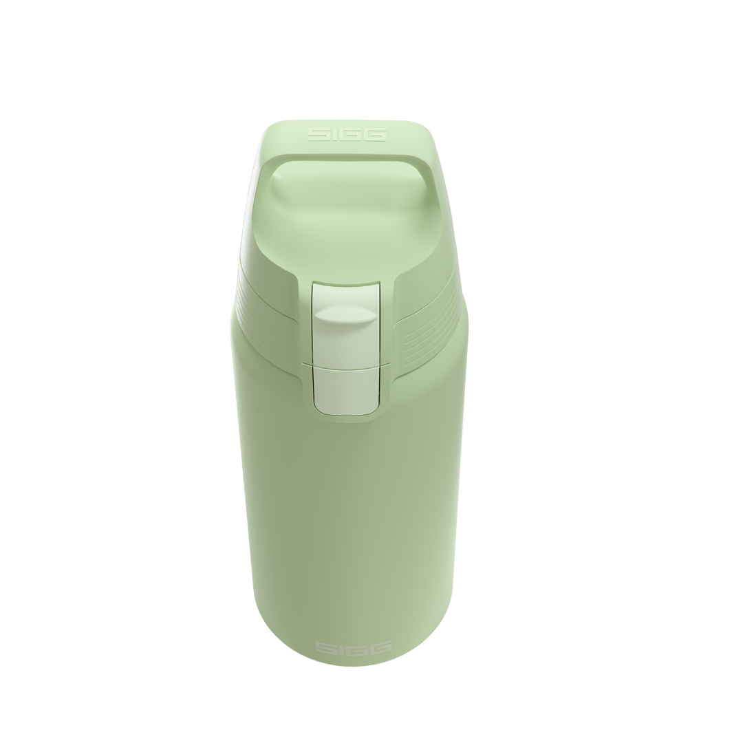 Die Sigg Shield Therm ONE Eco Green Trinkflasche mit ihrem Einhand-ONE-Top-Verschluss und das auf optimalen Trinkfluss ausgelegte Mundstück sorgen für hohen Komfort.